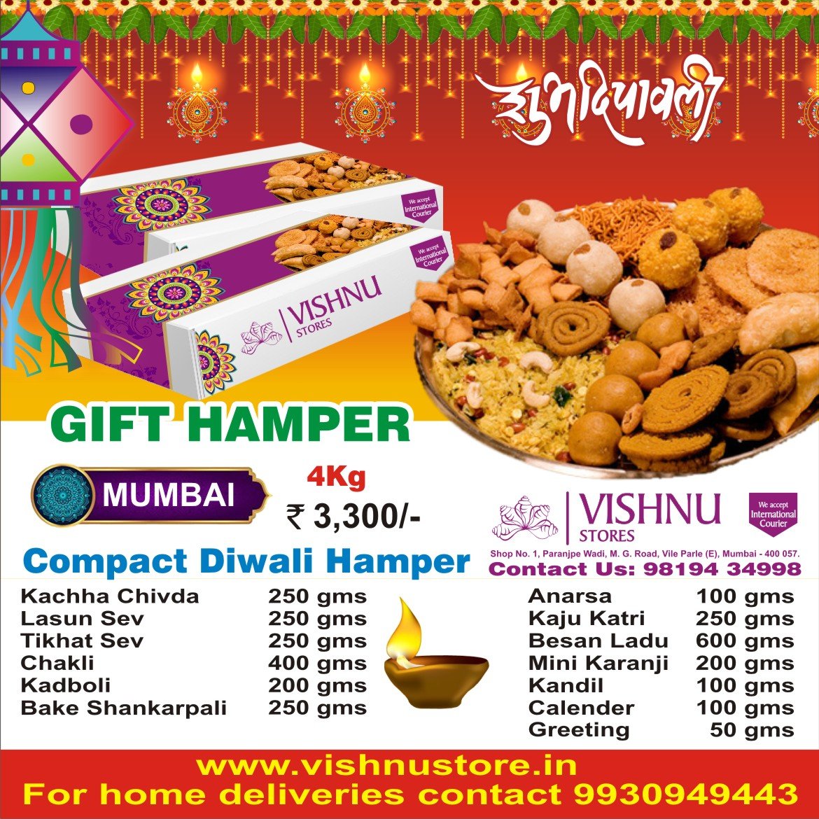 Celebrate Diwali with Vishnu Stores’ Compact Diwali Hamper—4kg of authentic Mumbai snacks, sweets, and festive essentials packed for joyful gifting or family feasts.